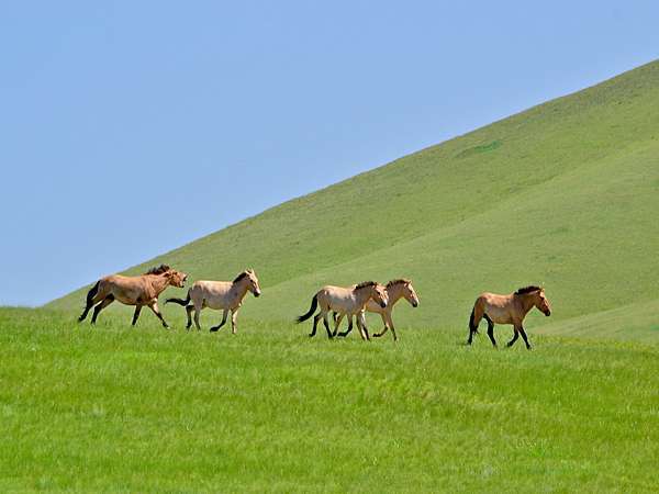 早餐後前往哈斯台國家公園。路上經過哈斯台國家自然景區;有連綿青翠山坡大草原,是瀕臨絕種世界上最優秀的蒙古野馬培育繁殖中心,目前只存 250 多匹馬,曾在蒙古消失,後來得到荷蘭的協助,在哈斯台培育成功,且大量野生放養,路程中一朢無際的草原,公路兩旁牛、馬、羊群天然放牧。【蒙古野馬資料館】,並由解說員解說,蒙古野馬生態與習性,然後再觀賞【蒙古自然生態】錄影帶,介紹蒙古自然生態動物及植物。