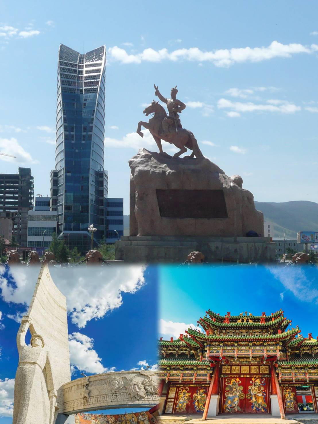 早餐後返回烏蘭巴托,安排參觀烏蘭巴托市區內著名蒙古國最大的廣場【成吉思汗廣場】,接著參觀【蒙古國歷史博物館】。享用午餐過後,參觀【翟山紀念碑】:是為慶祝革命50 周年和紀念第二次世界大戰期間為反抗日本、納粹德國獻出生命的俄蒙烈士而修建的。英雄戰士紀念碑側面有圓形的碑幕,上面鐫刻象徵蒙俄兄弟般友誼的雕刻。 圓形碑幕上的圖案中央雕刻著永遠熊熊燃燒的火炬。從翟山紀念碑上可以看到整個烏蘭巴托的風景。之後下山參觀【柏格達冬宮】建於1903年,是蒙古活佛【哲布尊丹巴八世】冬宮住所,宮旁喇嘛廟建築造型有中國傳統特色,宮廟層層相連,樑上有以藏文、元朝使用舊蒙文、滿文和漢文等文字書寫橫匾。晚餐後回酒店休息。