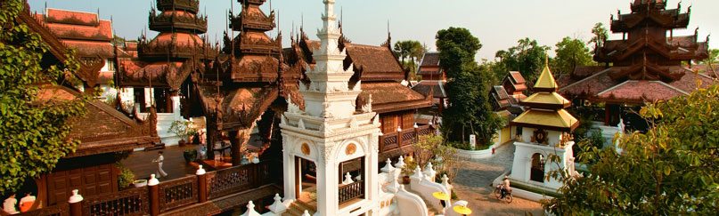 早餐後,專車前往參觀舉世聞名的─【金三角洲】,順路探訪清盛古城,後繼前往泰﹑緬﹑寮三國領土相銜接的地方,以(湄公、美塞)兩河的交匯,成為自然國界。您將於此處搭乘長尾船遊覽湄公河,觀看兩岸人民生活情形,在此您也可上寮國島。接著前往金三角國家公園,參觀【鴉片文史館】,此館展現了鴉片的來歷,非法毒品的衝擊,並提供給學者研究及探討,深具教育意義。“金三角”這三個字本身就會讓人聯想起此處是鴉片及海洛英的量產地,毒品的製造、毒品的交易、邊界、內戰、軍隊、警察及走私。在1988年,斯里娜加琳達皇太后(當今泰皇之先母后),在泰國最北部開始發展“DOI TUNG”計畫力求改善泰國金三角居民的生活,結束他們對罌粟花謀生的依賴。幾年後,皇太后,又進行另一個計畫,就是教育人民鴉片在金三角及世界各地的來歷以及幫助人民參與抗戰非法犯賣毒品。目地是要讓所有的人了解麻醉性藥物及非法毒品。這不只是住在金三角國界人民所要面臨的嚴重問題,也是世界各地人民所該關注的問題。接著到泰緬邊界最熱鬧的城鎮─【美塞】,看著緬籍男人穿著紗籠,女人把東西頂在頭上行走的情形。您更可過中緬邊境前往緬甸大其力城,將安排您搭乘當地三輪車,前往緬甸寺廟,導遊將會詳盡的為您介紹該廟的歷史,接著前往當地市集,琳瑯滿目的異國貨品,將令您流連忘返。而後驅車前往猴王洞,有成千隻猴群居於此處近百年,牠們有著自己的領袖,這麼多的猴子,每天的食物消耗量真是可觀,來此觀光的遊客都會就地買些果實供餵牠們飽食,猴群們一直來都過著無憂自在的生活。接著專前往居民們為了報答皇太后恩德而命名的【湖畔皇太后花園】,園中一年四季開著美麗的花朵五彩繽紛,其中最珍貴的(千年玫瑰)是在泰、中、緬的高山上發現的,紅色的花朵是皇太后最喜愛的。