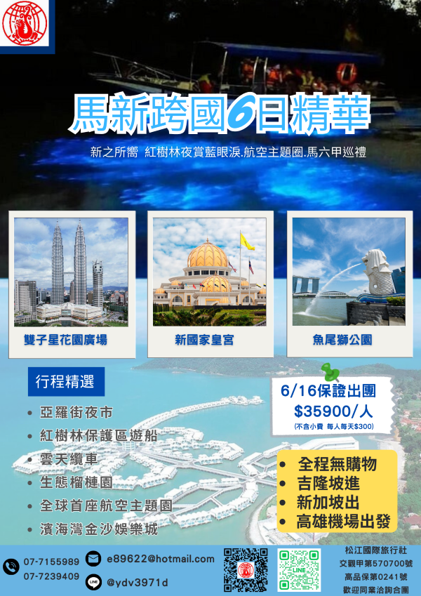 【新之所嚮6日】紅樹林夜賞藍眼淚.航空主題圈.馬六甲巡禮