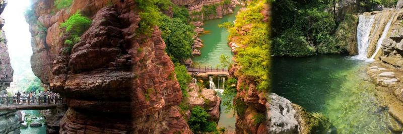 【小寨溝】遊覽因水似九寨溝而得名的小寨溝、和“盆景峽谷”紅石霞、此處丹山綠水,千仞壁 立,仿佛到了張家界,又有人說象丹霞山,據查此處爲與張家界地貌、丹霞地貌幷稱爲中國三大砂 岩地貌的嶂石岩地貌,以延續不斷的丹崖長墻爲主要特色。 早餐:飯店內用 午餐:四寶藥膳 晚餐:中式風味料理 酒店: 榮逸假日酒店或同級5星 第四天 焦作→輝縣→天界山(含電瓶車)→八裡溝(含電瓶車)