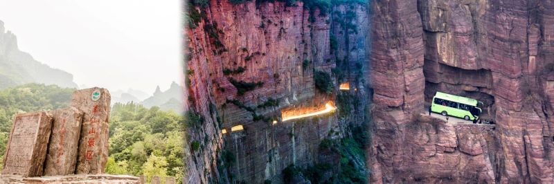 【太行天路】景點位於太行山之巔,北起桃花谷景區,南至仙霞谷景區,全長約30km,既是景區環 線遊覽道路的重要組成部分,更是俯瞰太行山壯麗風光的好位置。搭乘觀光車遊走於太行天路,猶 如置身百里畫廊,滿眼望去,無處不是大氣磅礴的國畫山水長卷,深邃的峽谷、直立的岩壁,帶給 遊客強烈的視覺震懾。