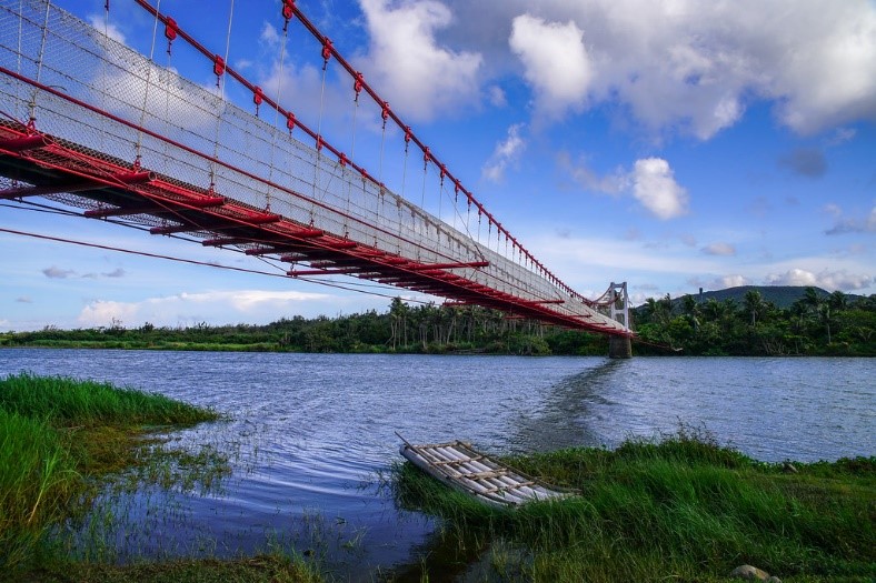 - 滿州吊橋~港口吊橋是該地最長的人行吊橋,遠遠就可以望見那紅白相間的橋身橫跨港口溪的身影,兩側溪岸也被樹群妝點的綠意盎然,由於吊橋離出海口不遠,站上橋面就能眺見闊麗的洋灣