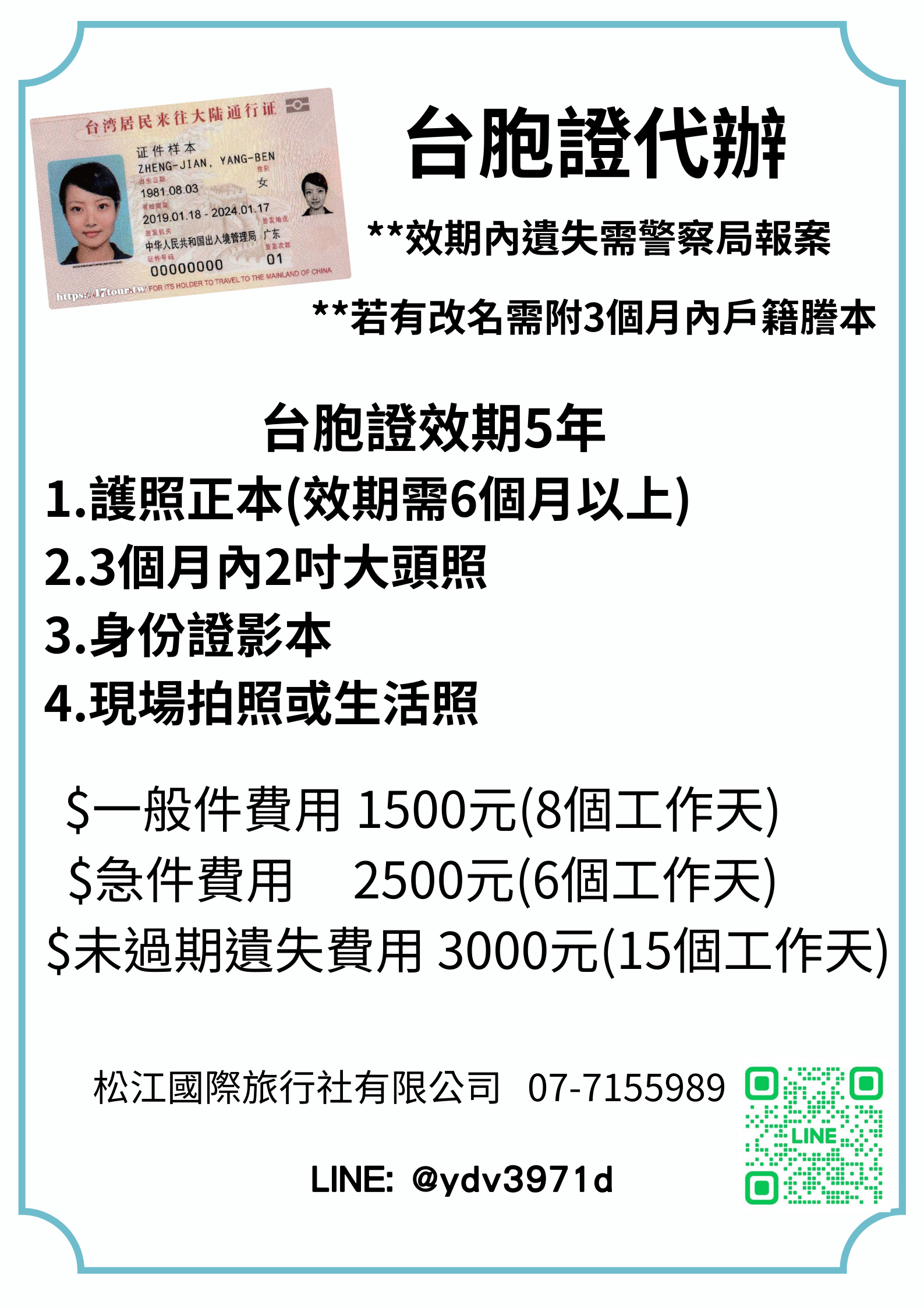 $$$ 未過期遺失費用 2800元(15個工作天)